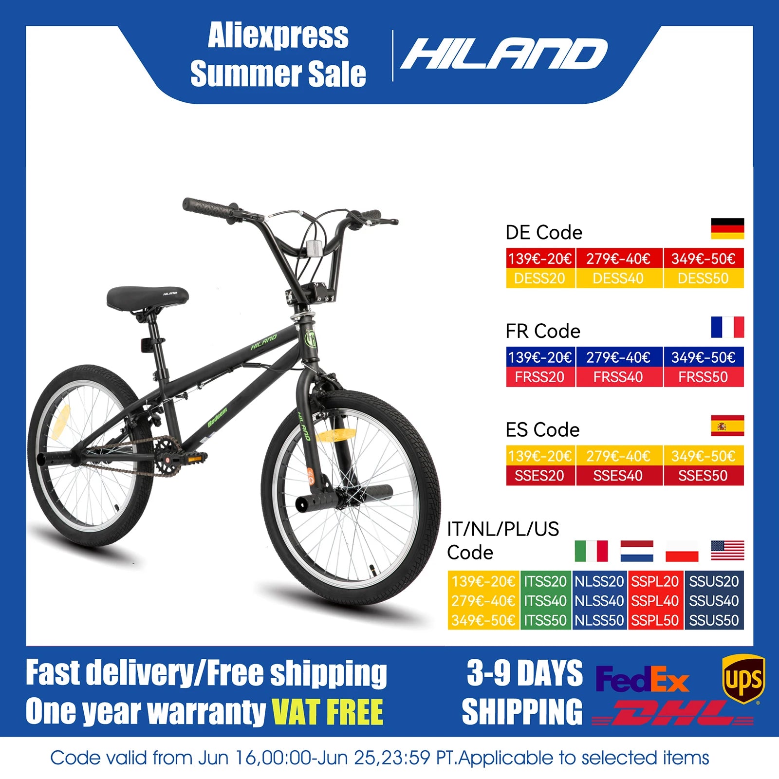 Hiland 20 inch Freestyle Kids BMX Bike